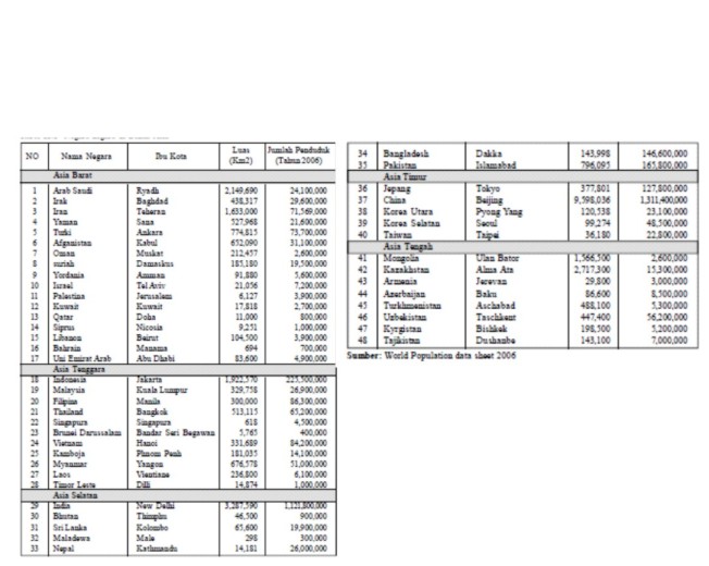 6) Keadaan PendudukRas PendudukPenduduk Asia terdiri dari beberapa Ras, yaitu :Ras Mongoloid, terdapat di wilayah Asia Timur dan Asia TenggaraRas Kaukasoid, terdapat di wilayah Asia Selatan bagian utaraRas Campuran Kaukasoid Negroid, terdapat di wilayah Semenanjung Arab